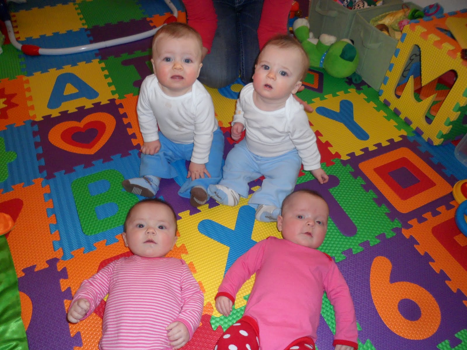 4 month old Evie + 4 month old Rosie+ 6 month old Ava + 2 year old Ella (all desperate for attention)= WAY TOO MUCH CRYING. So as much as I'd like to be there...its probably better that I'm not. Thanksgiving is only a couple weeks away!